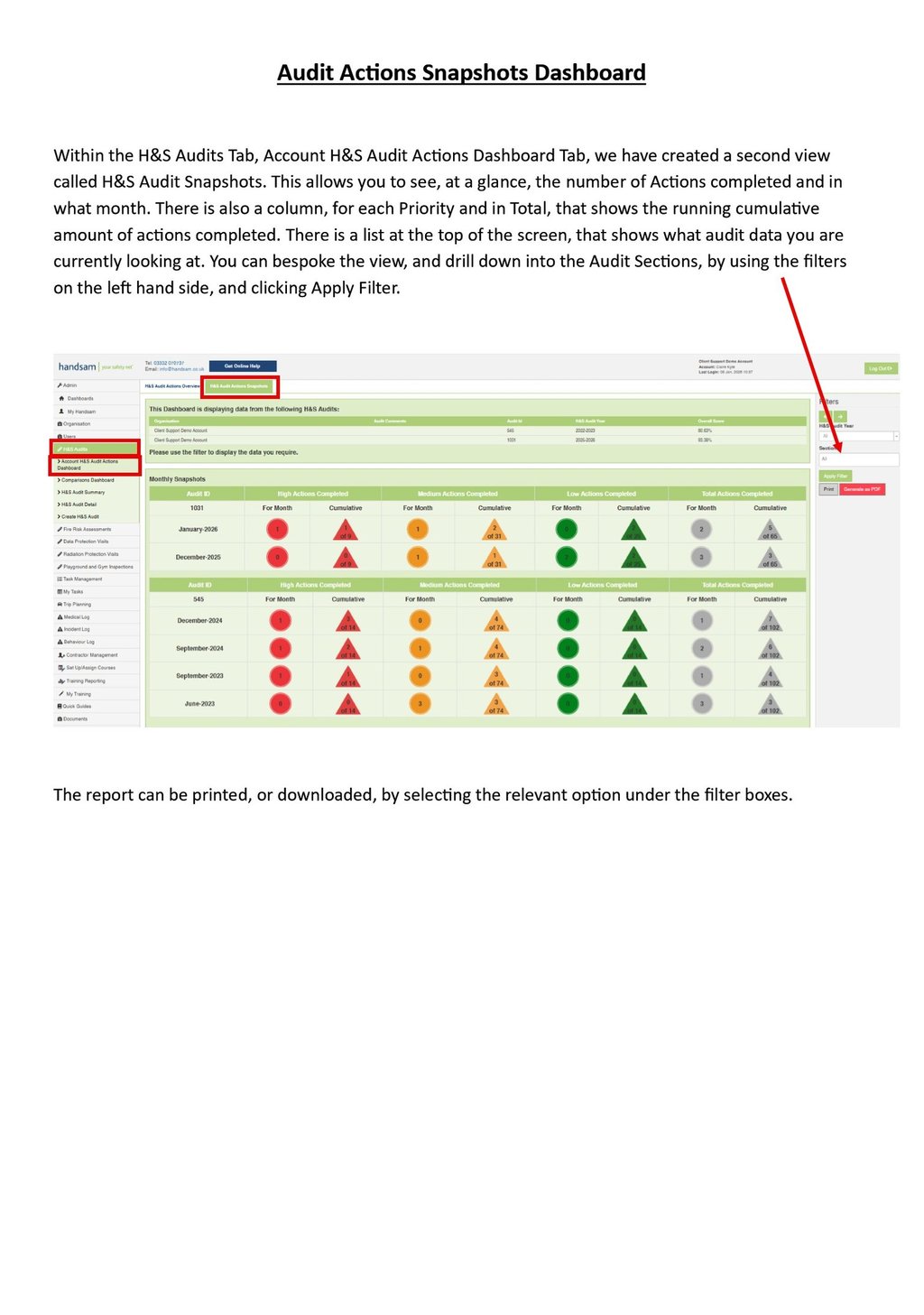Audit Actions Snapshots Dashboard