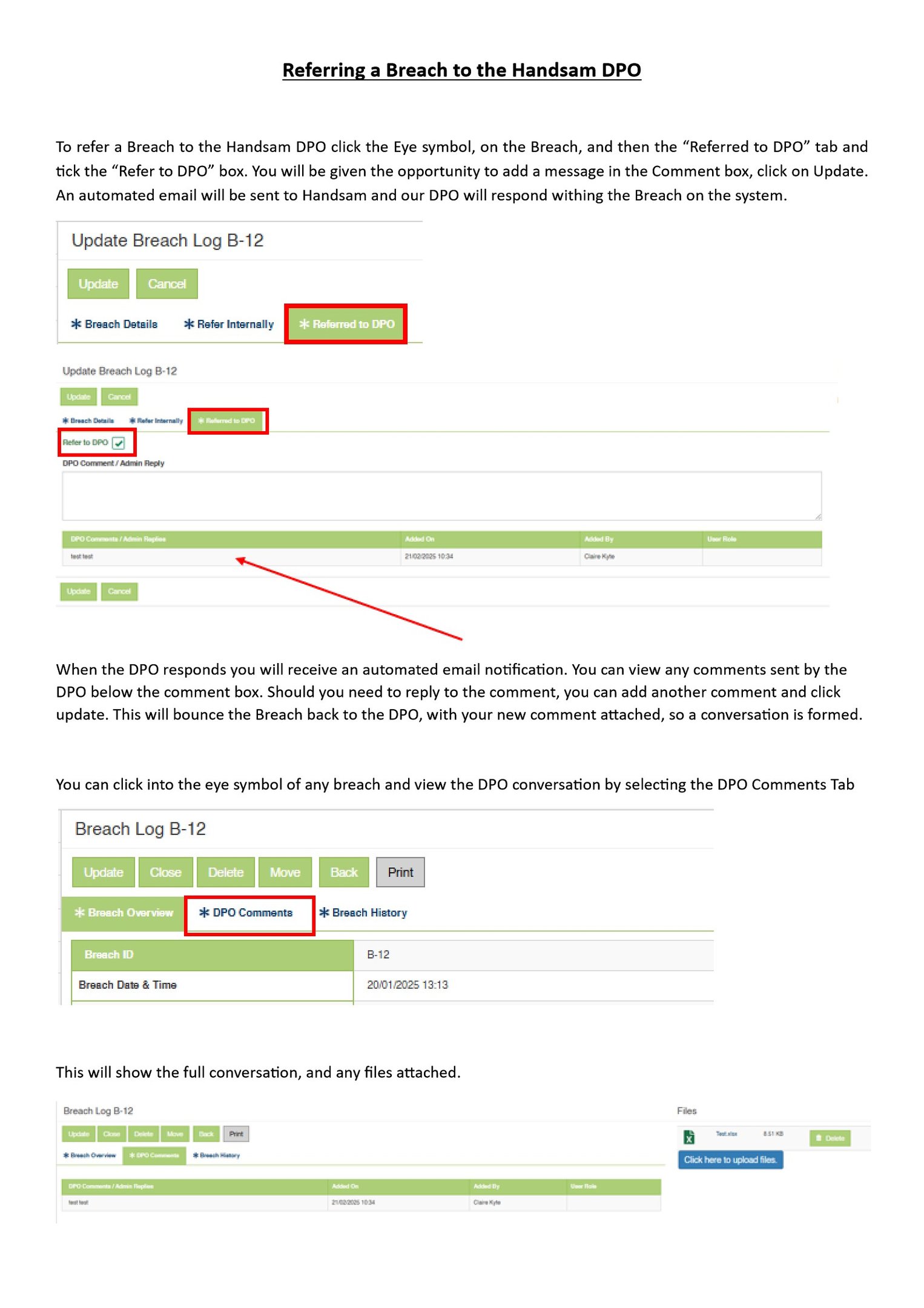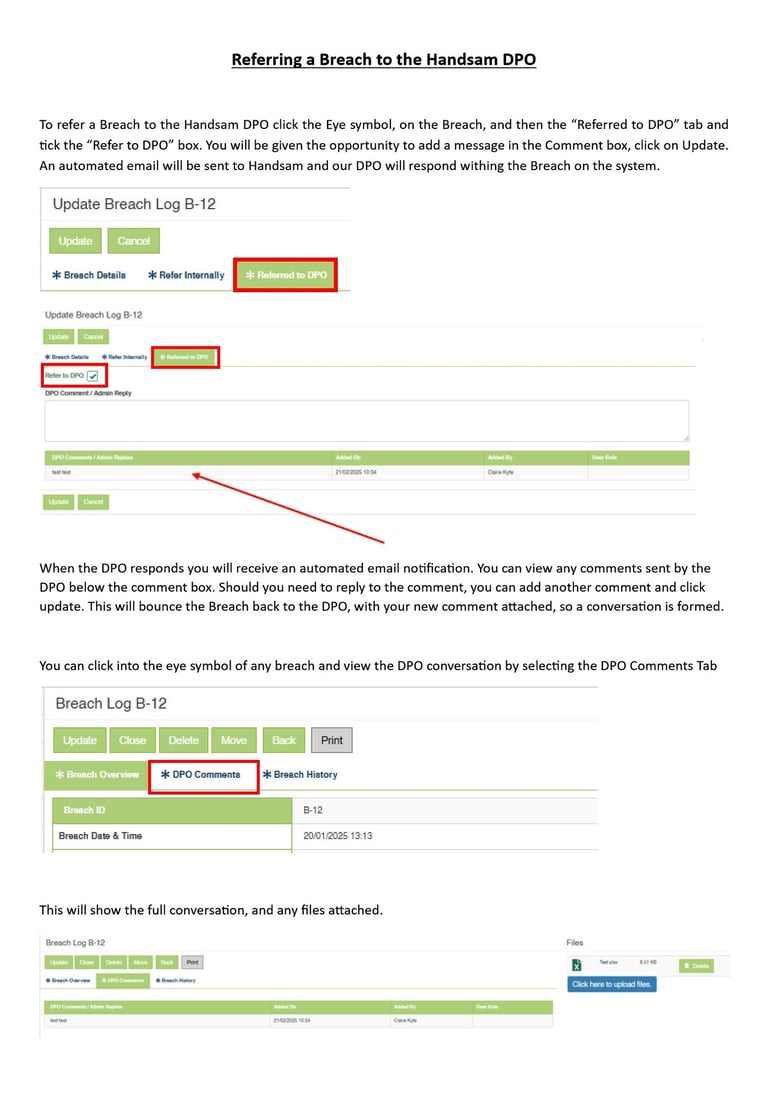 Referring a Breach to the Handsam DPO